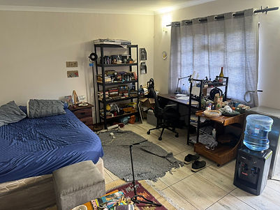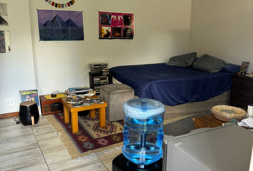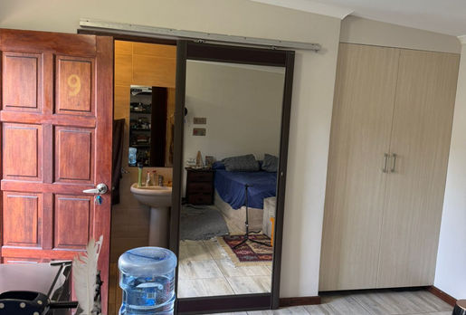 This bedroom with en-suit bathroom is on the yard outside of a luxurious house in Brooklyn. Includes uncapped wifi, cleaning services (and laundry), garden services, a swimming pool, safe and adequate parking. Water included. Prepaid electricity..